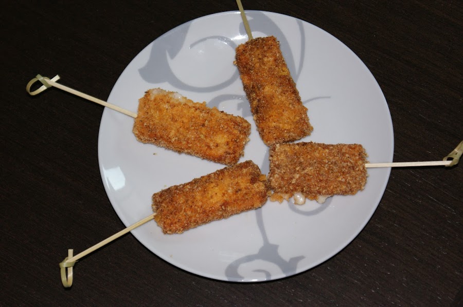 Trituramos los fritos hasta que queden como pan rallado, rebozamos el queso en harina, huevo y finalmente en los fritos de maízz.