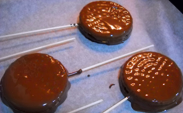 Dejamos que se sequen mientras calentamos el chocolate...ahora solo queda bañar las galletas con cuidado.