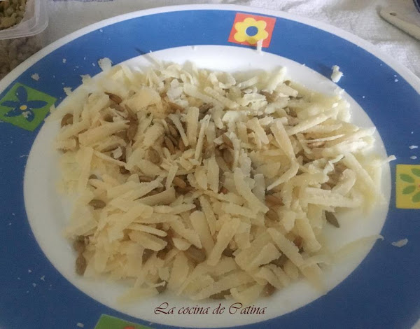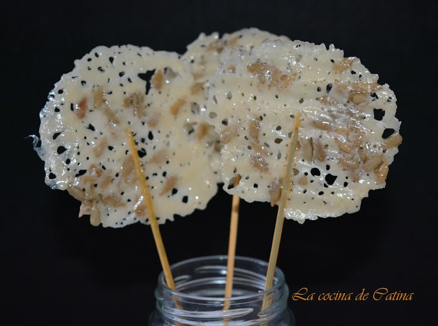 Aunque el parmesano es un queso de sabor fuerte, suele gustar mucho a los niños, por lo menos a los míos. Nosotros les pusimos pipas, pero se le pueden poner otro tipo de semillas, quedan muy bien con todo.