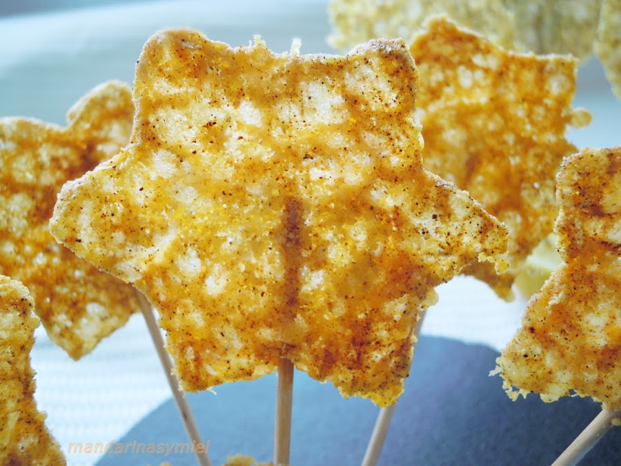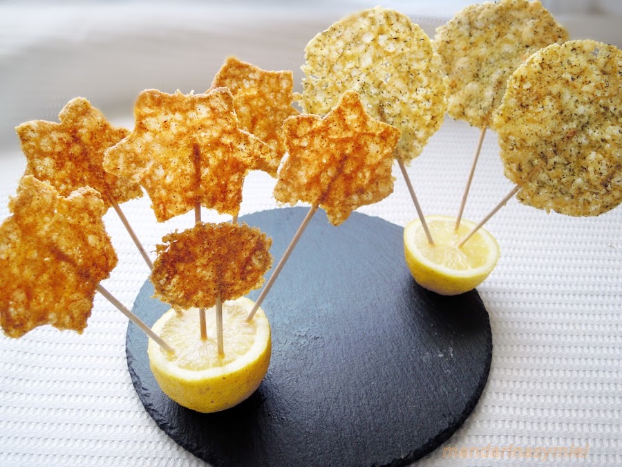La receta original de Lorraine son unas piruletas de parmesano con semillas de amapola, pero yo la he tuneado un poco y las he hecho de dos maneras diferentes, unas las he hecho con tomillo seco y otras con pimentón dulce.....quedaron muy muy sabrosas!!!