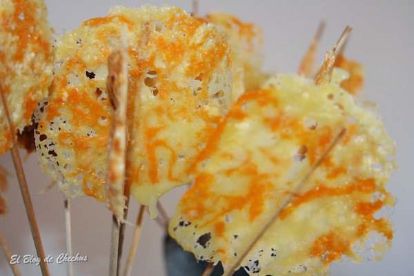 Estas piruletas de queso son una buena idea para decorar una mesa de forma original, y además muy ricas para comer. Colocadas en unos jarrones o botellas quedan muy bonitas y a la gente les gusta mucho, sobre todo a los niños. Lo bueno es que son muy fáciles de preparar y os explico como: