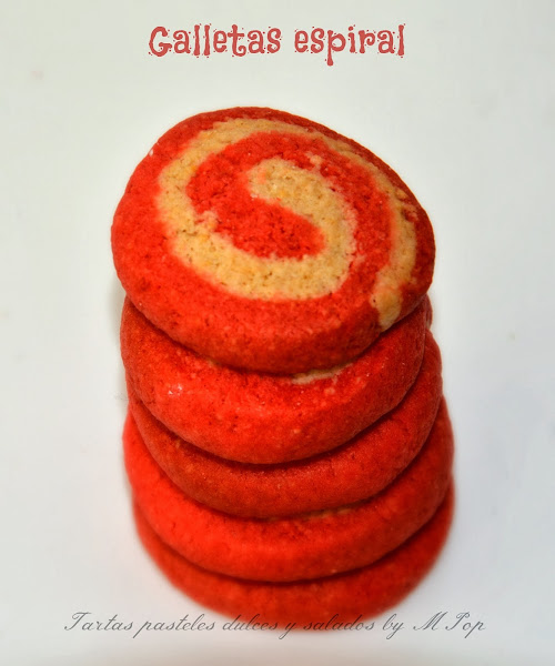 Para formar las galletas, vamos separando pequeñas porciones de cada color de masa y formamos bolas con cada una de ellas, con lo que obtendremos para cada galleta, una bola de masa sin color y una bola de masa roja ( ver foto 1 desde arriba hacia abajo)