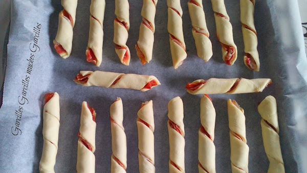 Y de pronto se me iluminó "la bombilla" ¿y si los hacia retorcidos en vez de las clásicas empanadillas? le dije a Alba que si me queria ayudar y en un momento los hicimos....