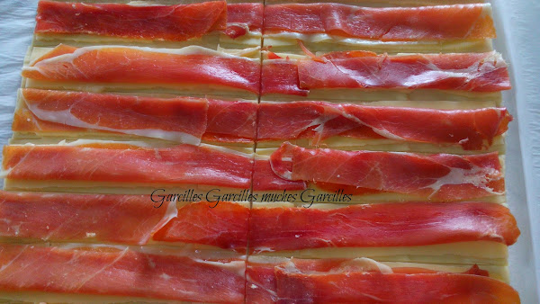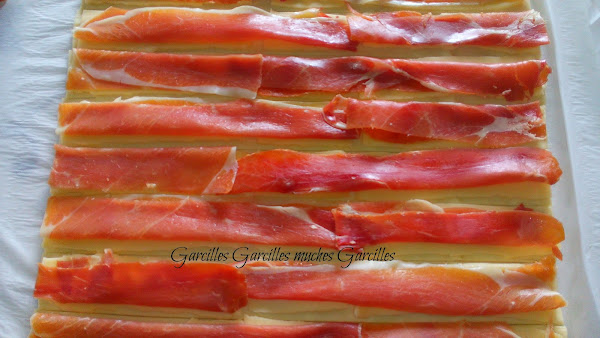 Cortar el quesu y el jamón del mismo ancho que las tiras