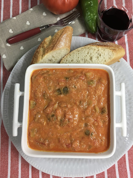 Gloria, de Fariza, me regaló un calabacín, pimientos verdes, cebollas y tomates de su huerta y decidí hacer esta versión del pisto firmada por el gran Karlos Arguiñano.