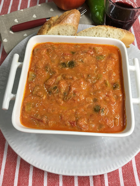 Se sirve muy caliente acompañado de pan frito o bien de una barra de buen pan.