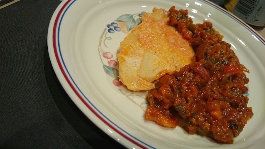 Este condimento es para acompañar especialmente pescado pero vale para pasta y carne, de echo yo me lo tomo más con pasta que de la manera en que se sirve.
