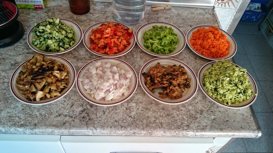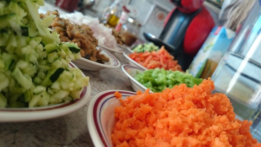 Primero vamos a poner los ingredientes organizados y a mano para ir cogiendo el que necesitamos.