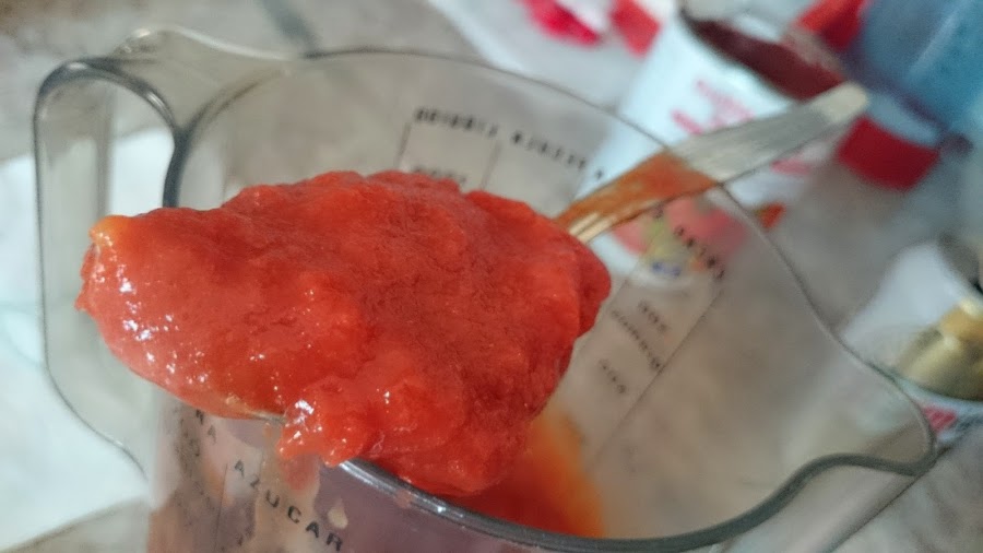 Cuando este echa la salsa, la reservamos y a continuación echamos los demás ingredientes al vaso y los mezclamos poniendo la mariposa unos 2 minutos a velocidad 1.