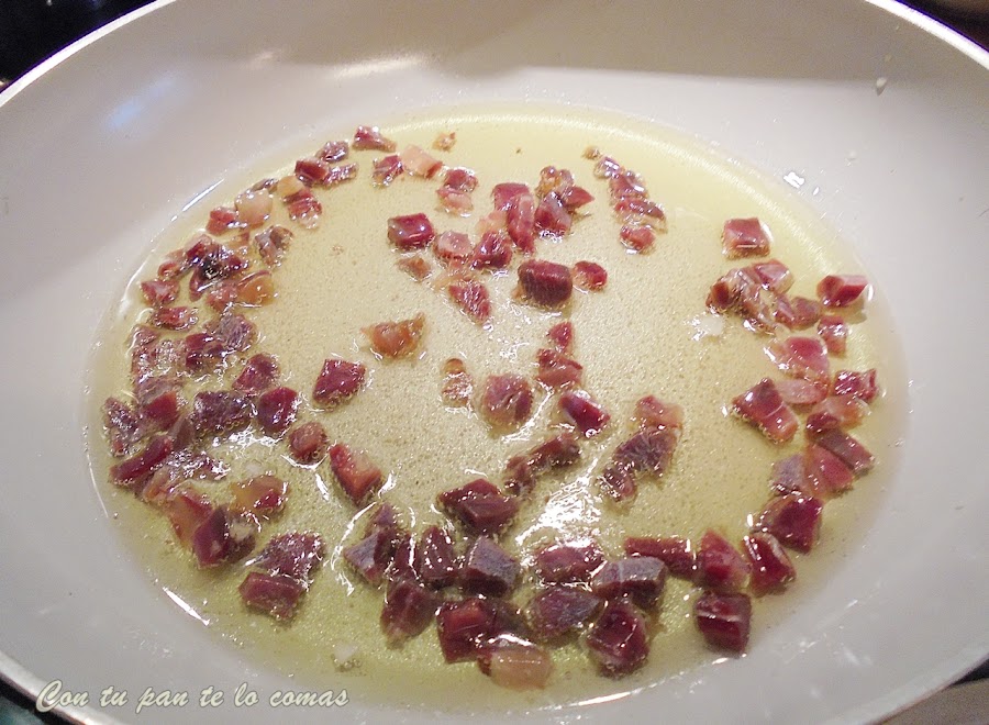 3. Cuando esté todo hecho incorporamos los taquitos de jamón que habíamos reservado.