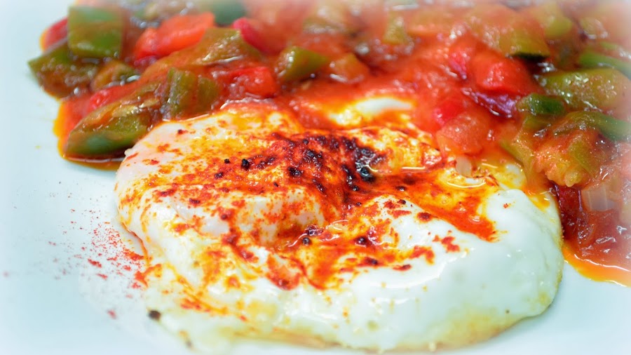 Fríe los huevos fritos con un poco de sal y pon pimentón dulce cuando estén listos.