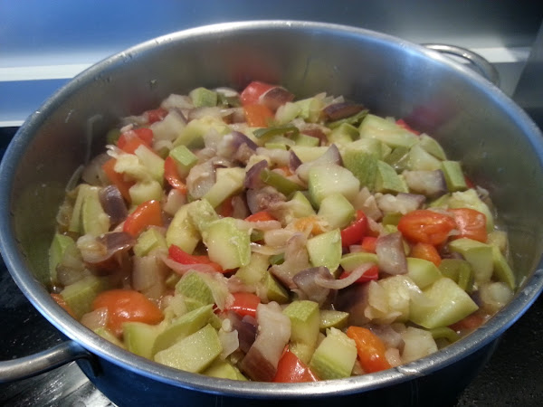 La receta original no lleva berenjenas, pero a mí es que me encantan, y he leído por ahí, que al ponerle las berenjenas se convierte en Ratatouille, y yo que pensaba que era una película de dibujos animados.....