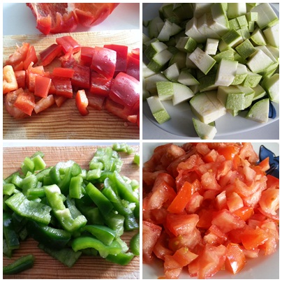 4. - Mientras, cortamos los calabacines, los pimientos y los tomates.