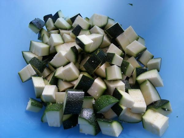 2. - Hacemos lo mismo con las calabacines, pero éstos sin pelar.