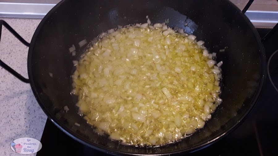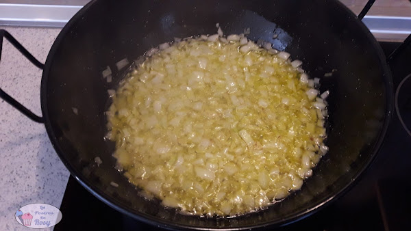 - Primero sofreímos la cebolla hasta que "transparente".