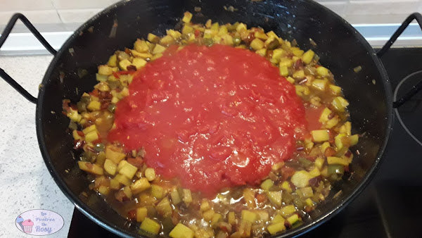 - Añadimos el tomate natural triturado y sazonamos al gusto.