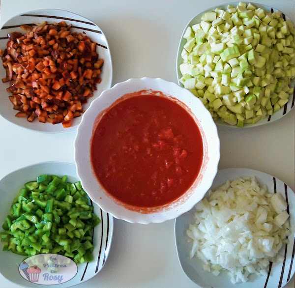 - Cortamos las verduras en daditos de un centímetro aproximadamente.