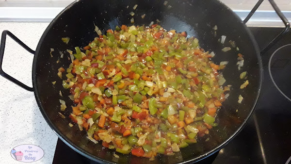 - Añadimos el pimiento rojo y sofreímos unos minutos (3-4).