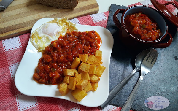 - Corregimos la acidez del pisto añadiendo un par de cucharas de azúcar (este paso es un poco al gusto de cada uno).