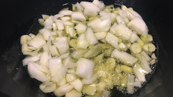 Pela cebolla y ajo.
