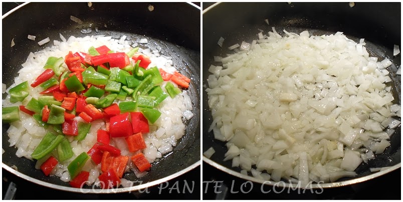 1. En una cazuela o sartén grande, sofreímos la cebolla picada hasta que esté transparente.