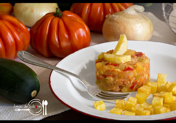 El pisto es una amalgama de hortalizas sabiamente combinada. Sus orígenes hay que buscarlos en la cocina árabe. Antiguamente este plato sólo llevaba cebolla y berenjena. Las primeras referencias al pisto manchego hablan de estos ingredientes más el ajo. Pero con los productos que llegaron de América tras el Descubrimiento, toda la cocina occidental evolucionó y el pisto no fue una excepción. Se incorporó el tomate, el calabacín y el pimiento. Podríamos decir que el pisto se americanizó. Éste es un plato sencillo pero que sigue evolucionando. Cada rincón de la Península Ibérica tiene su propia receta para hacer el pisto. Nosotras nos hemos inclinado por ésta que excluye la berenjena pero que incorpora unos dados de patatas fritas como acompañamiento.