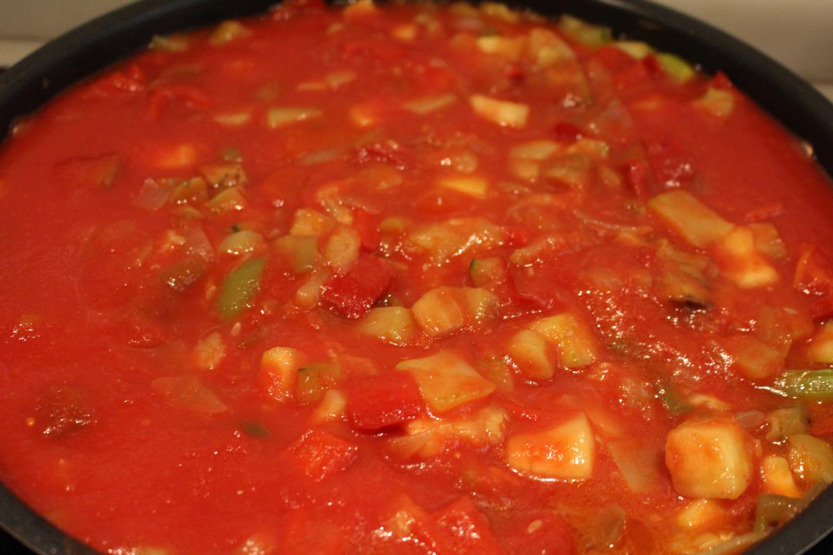 (yo prefiero hecho en casa pero a veces utilizo de bote, crudo y triturado ) .Dejar consumir hasta que espese.