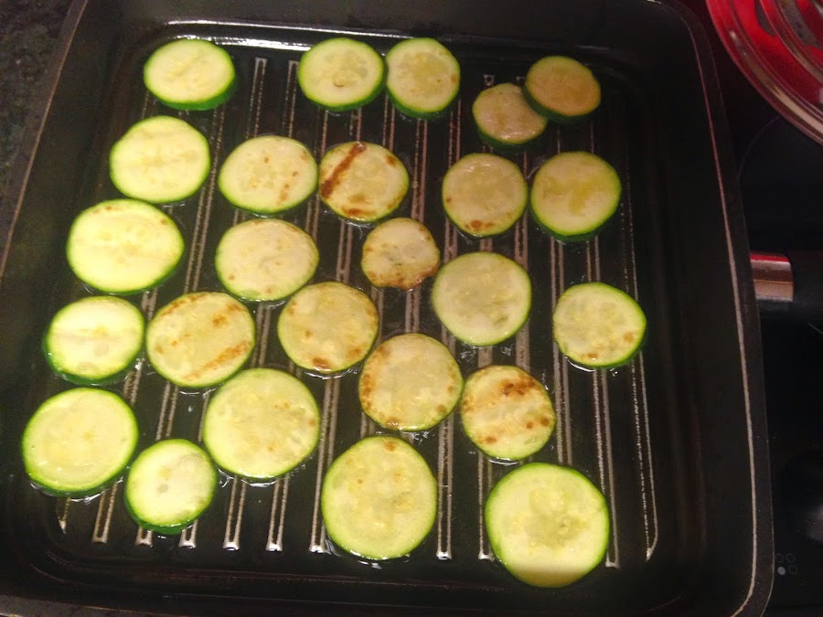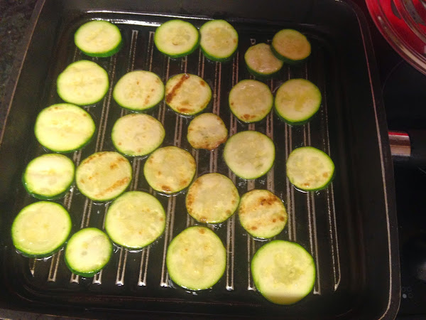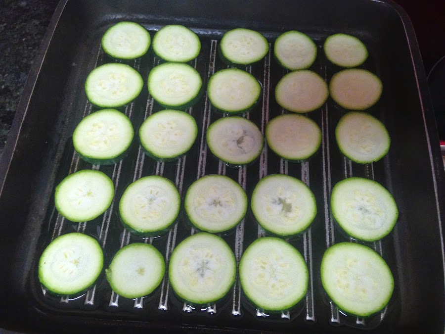 Empezaremos laminando el calabacin y lo pondremos en la parrilla con un poco de aceite de oliva.
