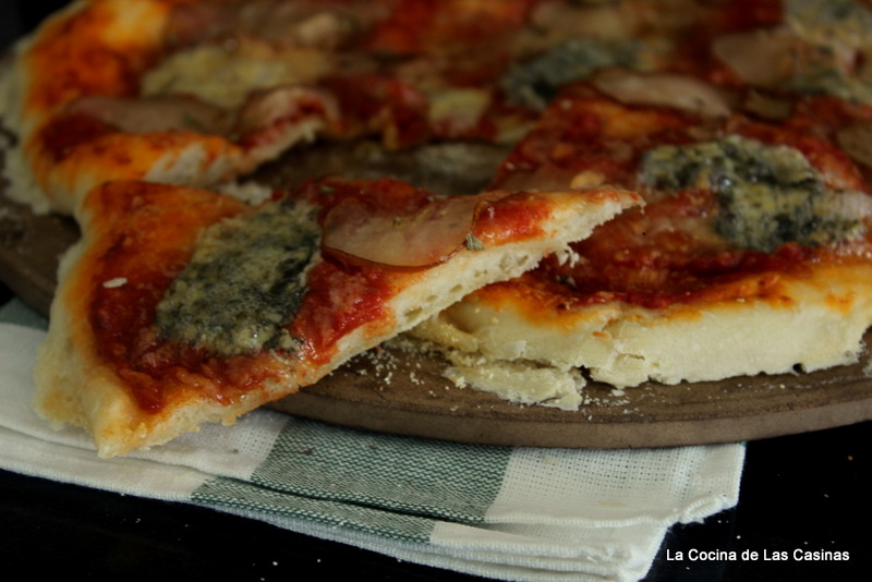 Hace tiempo descubrí a Gabriele Bonci, el gran Maestro de la Pizza. Puedes probarlas en su local romano Pizzarium. Su gran aportación, entre otras, es una pizza con una masa muy alveolada gracias a un porcentaje de hidratación del 80%. Ahí es nada, es un fenómeno. La primera vez que intenté hacerla me pareció una locura en su manejo, podéis ver las recetas aquí, aquí y aquí . La masa es una maravilla, aquí está el secreto, le puedes añadir lo que quieras, el éxito de la receta está asegurado.