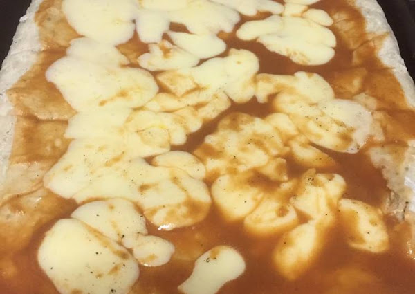 La colocas a fuego bajo y la cubrís con la salsa de tomate (condimentada con azúcar y orégano).