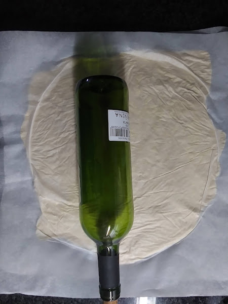 Si no tenemos rodillo, con una botella y otro papel de hornear sobre ella, nos puede valer.