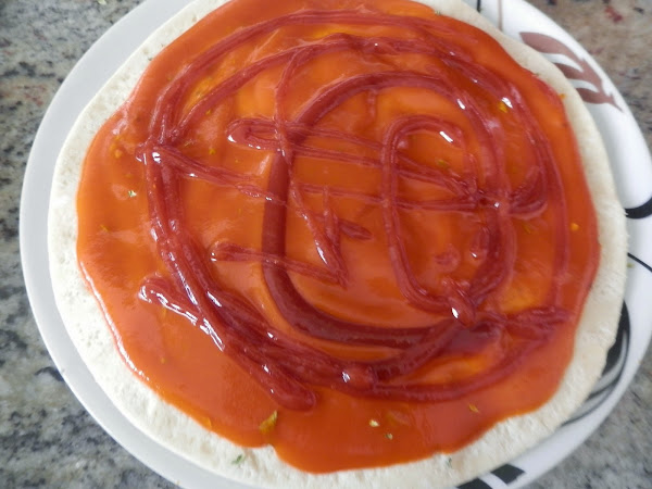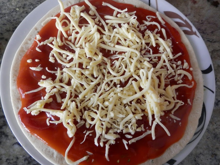 Ponemos la masa de pizza en un plato.