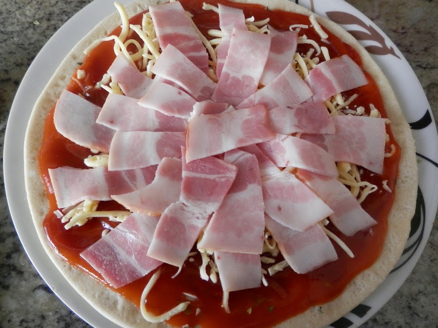 Ahora, pondremos encima de esto el bacon cortado en tiras,