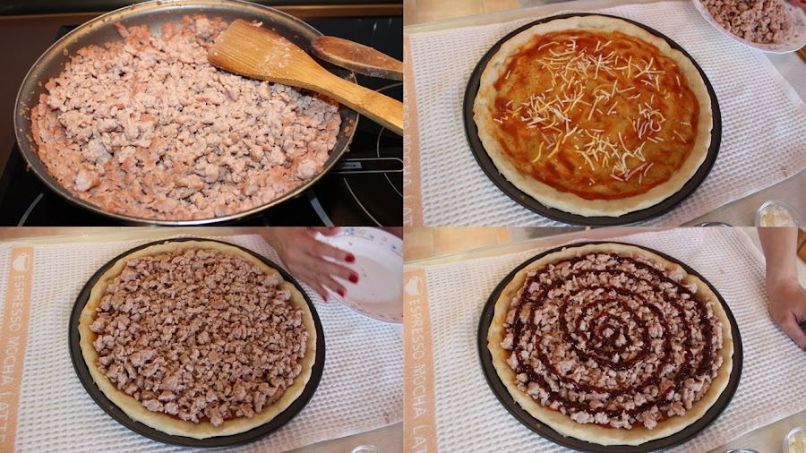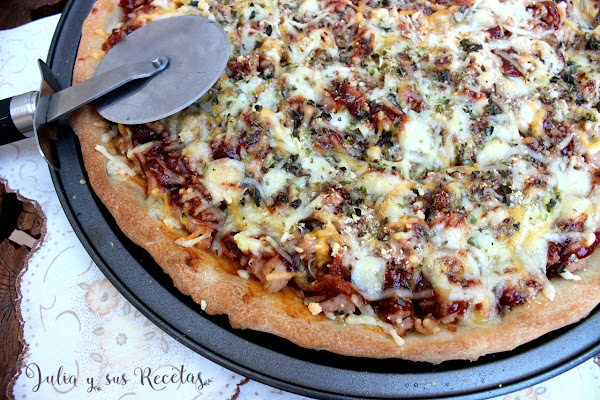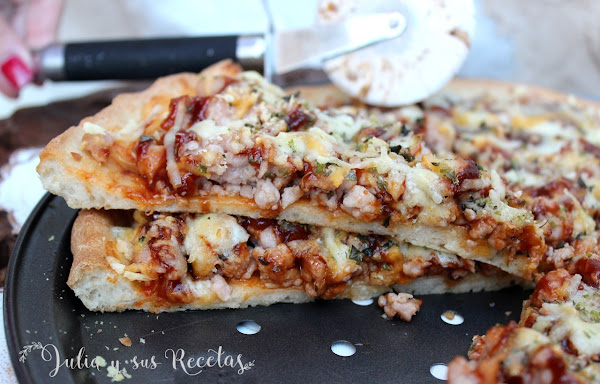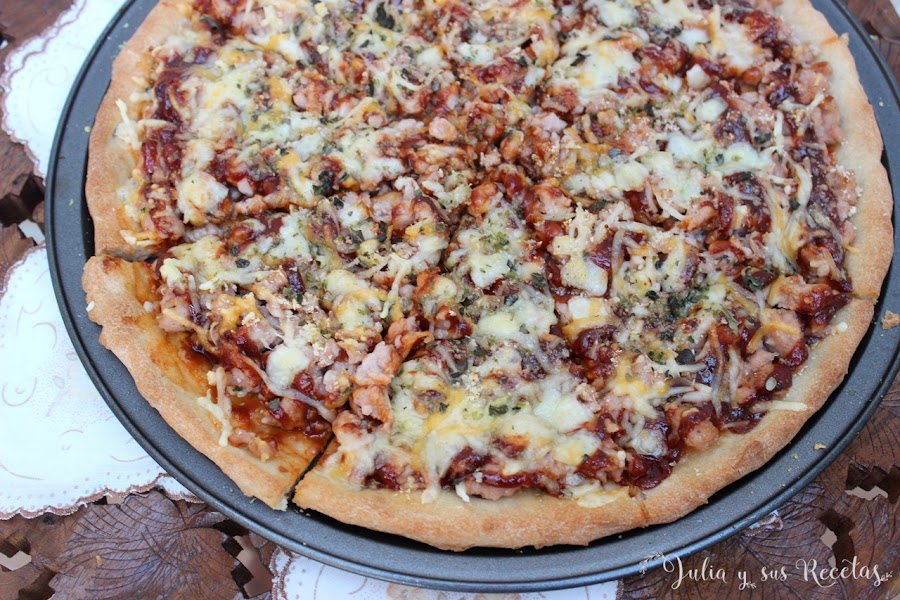 Creo que es una de las pizzas que más gustan a mis hijos, la pizza barbacoa. Quizás por la jugosidad que le da la salsa o por la carne picada aliñadita o por lo fácil que es hacerla. La cuestión es que es una de las que más hago en casa.