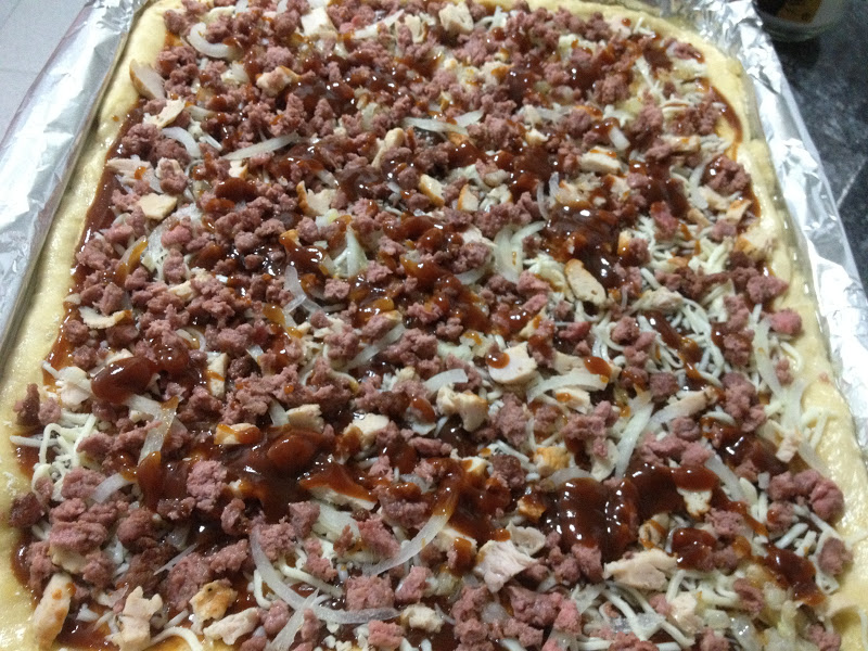 * El consejo de Ereaga : La pizza barbacoa también admite maíz . En mi caso no fue posible , ya que me di cuenta tarde de que no lo tenía , pero el maíz le queda bien a esta clase de pizza .
