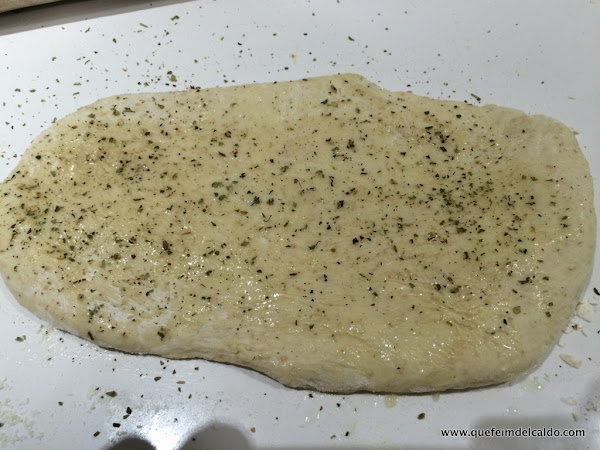 Una vez hayamos amasado la masa alrededor de 4 minutos la extendemos con el rodillo en forma de lengua con un grosor de aproximadamente 1 cm.