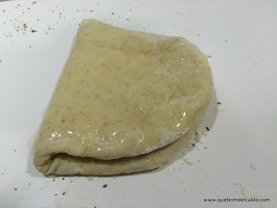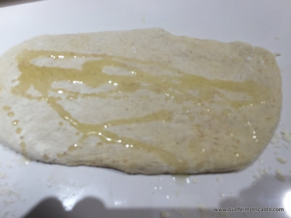 Añadimos un chorrito de aceite de oliva sobre la masa.
