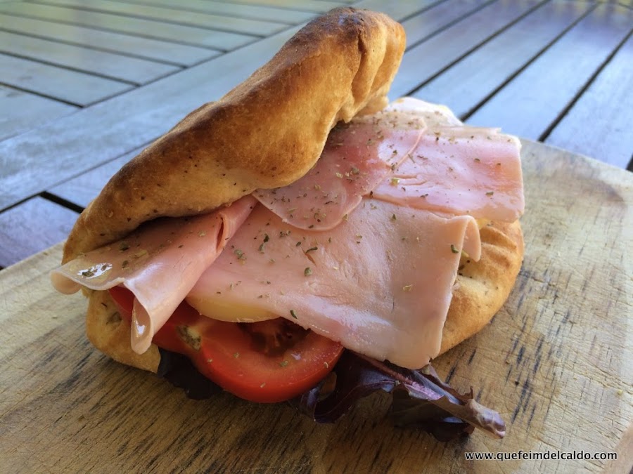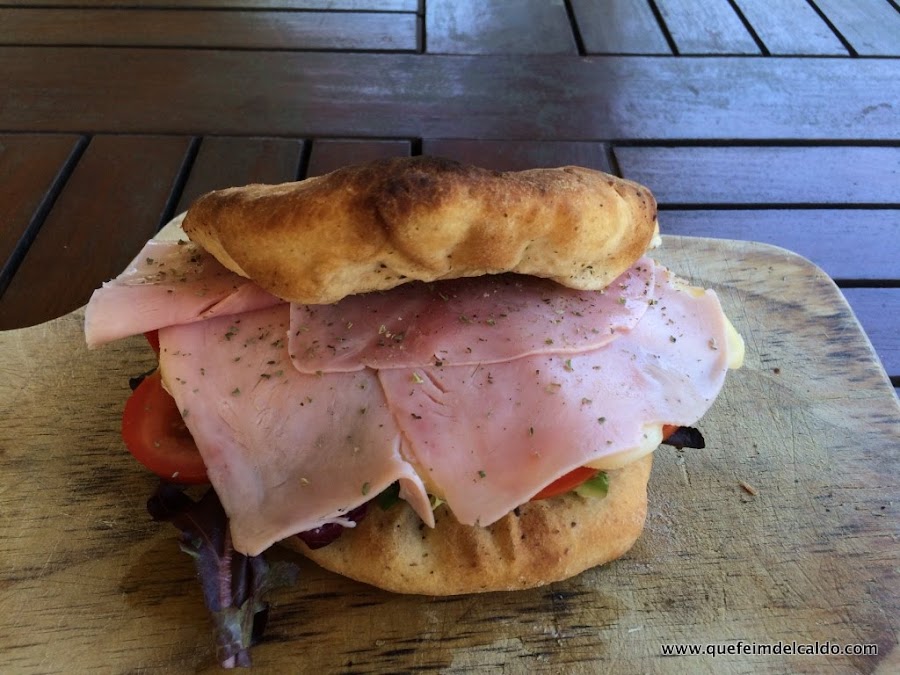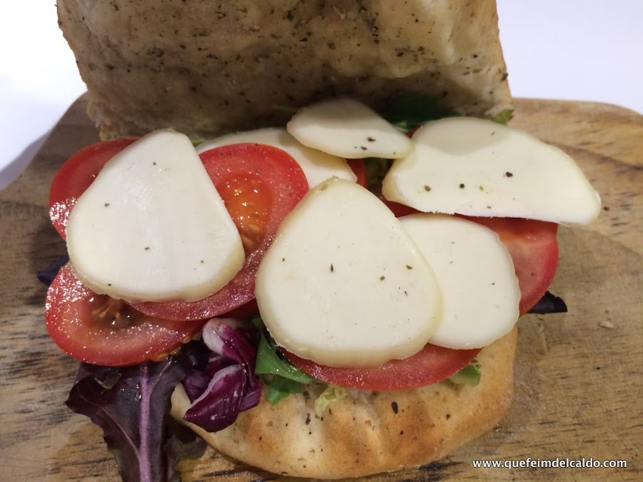 La rellenamos al gusto, yo la he hecho simple de jamón cocido mozzarella, tomate y lechuga.