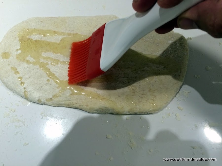 La pintamos con un pincel para distribuir el aceite por toda la masa.