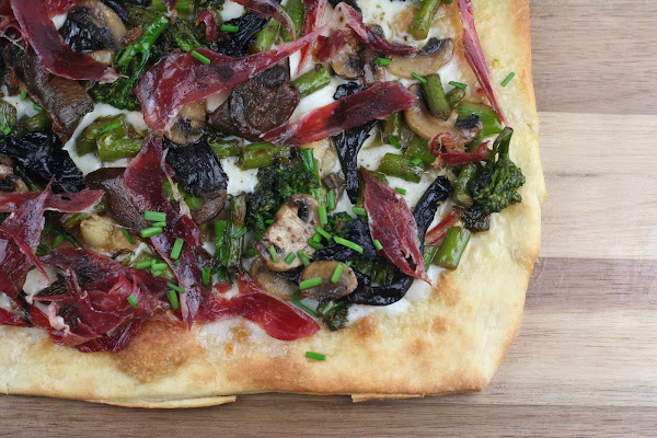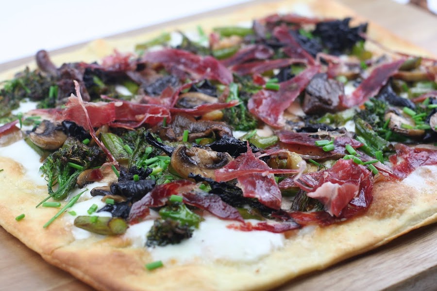 PIZZA BLANCA DE BIMI, SETAS Y JAMÓN IBÉRICO