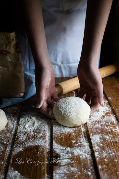 1. Preparar la masa de pizza casera - Disolver la levadura en el agua templada, incorporar el resto de los ingredientes al bol y mezclarlos con la mano, obtendremos una masa pegajosa. Dejar reposar 15 minutos en el mismo bol, transcurrido el tiempo pasarla a la superficie de trabajo ligeramente enharinada y pliégala sobre sí misma. Dejar de nuevo reposar otros 5 minutos y dividirla en tres porciones de 300g cada una. Formar una bola con cada una de ellas y guardarlas en tres táperes untados con aceite previamente, taparlas y dejarlas en la nevera hasta un máximo de 4 días.