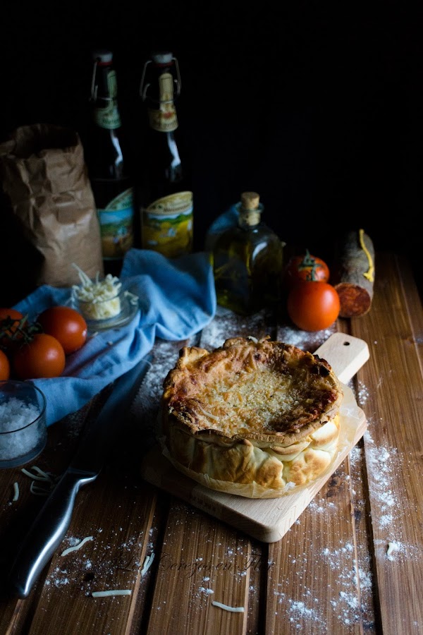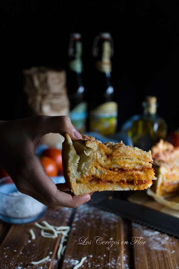 Hoy sólo una pizza pero no me negaréis que no es especial?. Rellenarla a vuestro gusto, de verduras asadas y queso, de chile con carne para los más atrevidos, diferentes rellenos por capa...imaginación al poder. Que os aproveche!!!