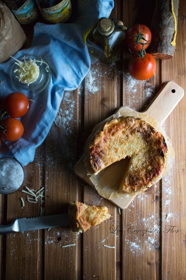 Hoy sin ir más lejos se ha comido esta maravillosa pizza cake que le ha sabido a gloria. Se la he rellenado de chorizo y queso de cabra y pimientos asados, pero se pueden hacer de cualquier sabor que os guste. Otra variedad que le encanta es la de cebolla caramelizada, higos y queso de cabra. Imaginación al poder!. En mi caso he utilizado la masa para pizza casera del genial Ibán Yarza, pero si no tenéis ganas de amasar y disponéis de poco tiempo, la masa comprada también da buenos resultados.