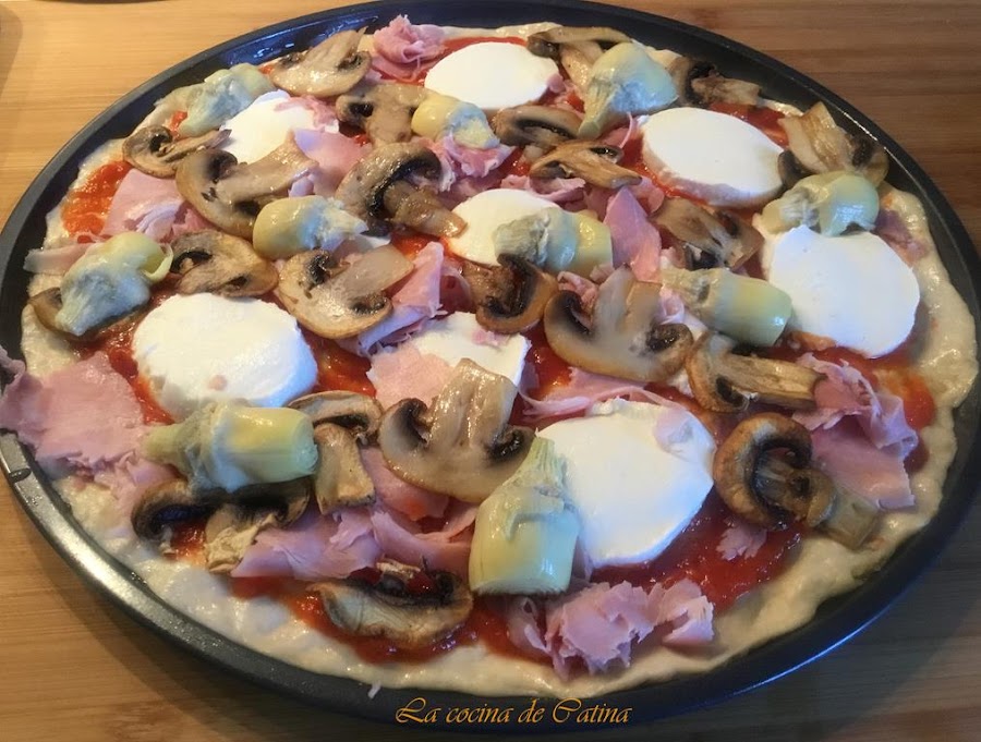 Aquí os dejo esta pizza caprichosa que está para chuparse los dedos.