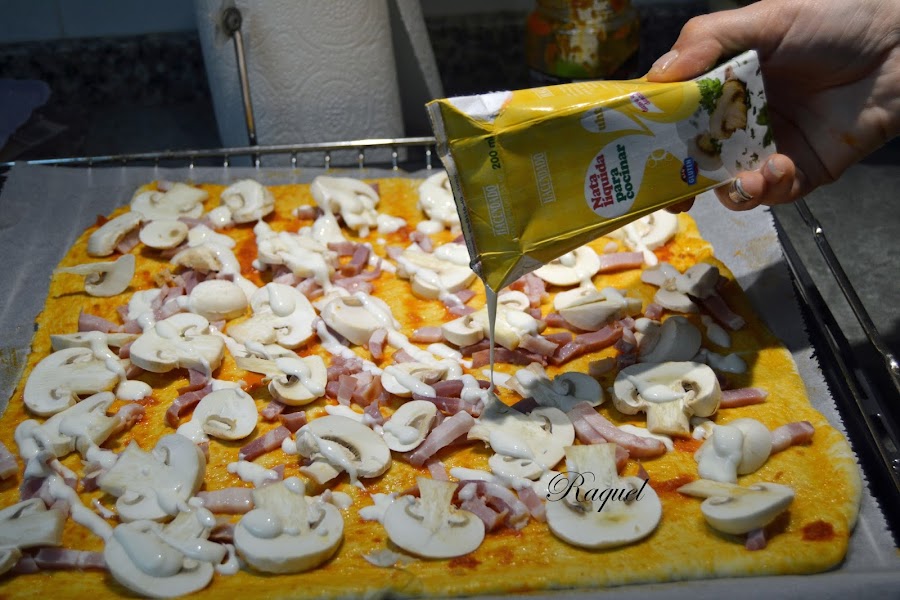 Bueno ya es viernes por fin!! se me ha hecho larga esta semana, así que ahora toca descansar en el fin de semana y disfrutar un poco y como no también en la mesa, con una buena pizza hoy como muchos viernes os traigo otra versión, la de hoy pizza carbonara a mi manera claro esta!!
