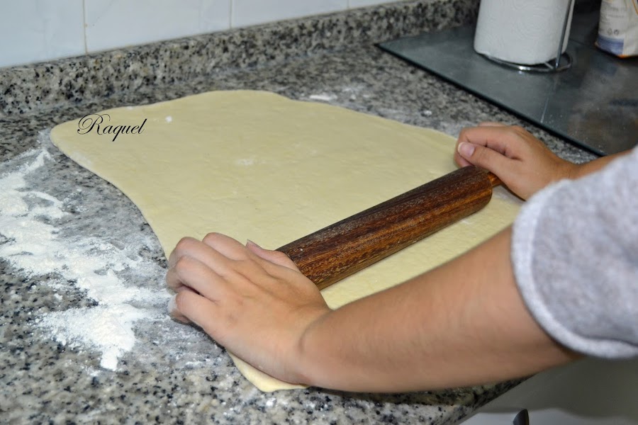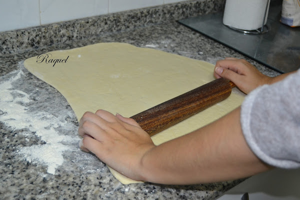 La de hoy es especial porque mi hija a estirado la masa y siguiendo los pasos que le di la preparo ella, se le da bien esto, pinta maneras!!