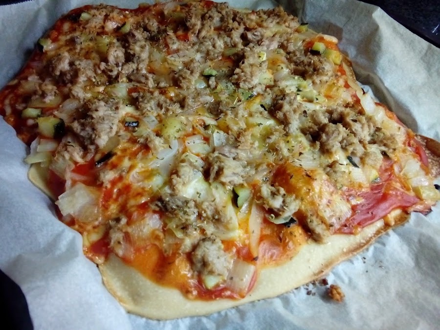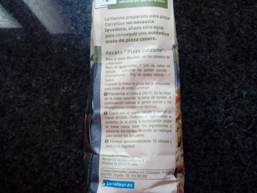 Me gusta probar estos preparados que nos facilitan el trabajo en la cocina. En este, sólo hay que añadir agua y seguir las instrucciones, aunque pone que dejemos reposar 20 minutos, yo la tuve unas 6 horas, pero también se puede dejar de un día para otro. Con un kilo salen 4 pizzas como en la foto. Lo preparé entero y las que sobraron las metí en el congelador, así sólo hay que sacarlas la noche antes a la nevera y estirarlas cuando vayamos a hornearlas.