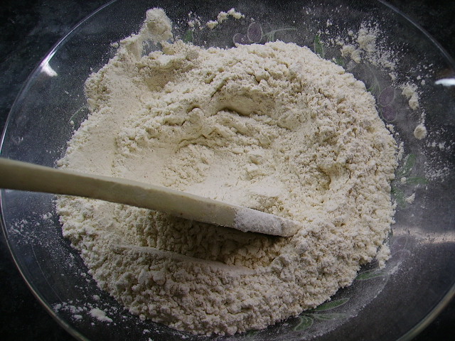 1.- Mezclamos las dos harinas en un bol.