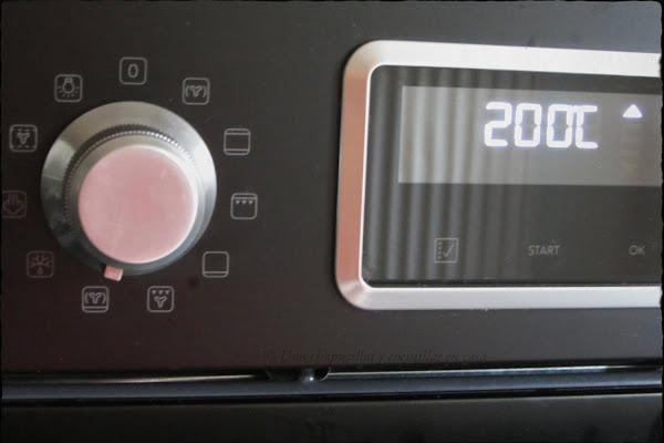 Bueno, una vez esta la masa lista, encendemos el horno, yo lo pongo a 200º C en la mitad con el programa en la posición ideal para panes y pizzas que es calor por abajo y convección. En su defecto poner calor arriba y abajo.