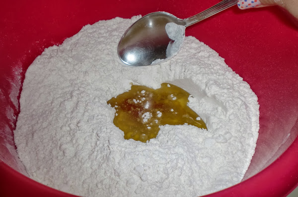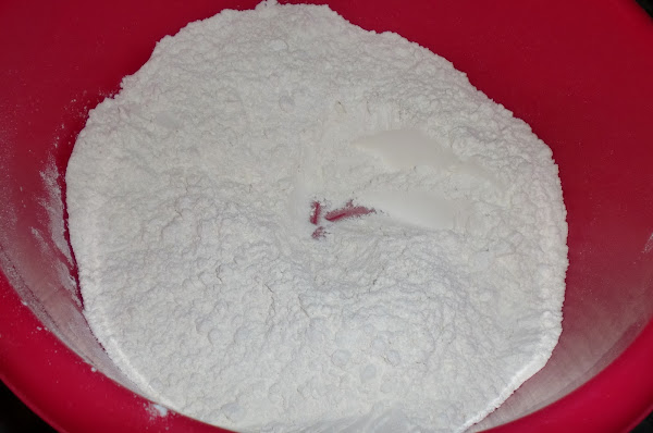 Ponemos en un bol la harina y la sal y removemos para mezclar bien.
